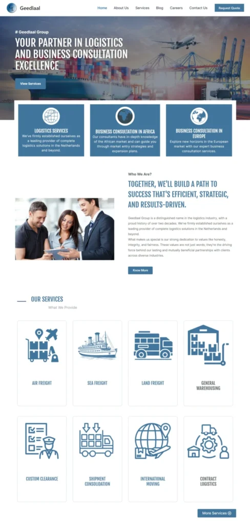 Geedlaal, a leading Netherlands-based logistics company specializing in cargo services to Africa, approache DMarketing with two goals: revamp their website design and improve organic search visibility to attract more clients seeking Africa-bound cargo solutions. Their existing website, while functional, lacked visual appeal and struggled to rank competitively on search engines.